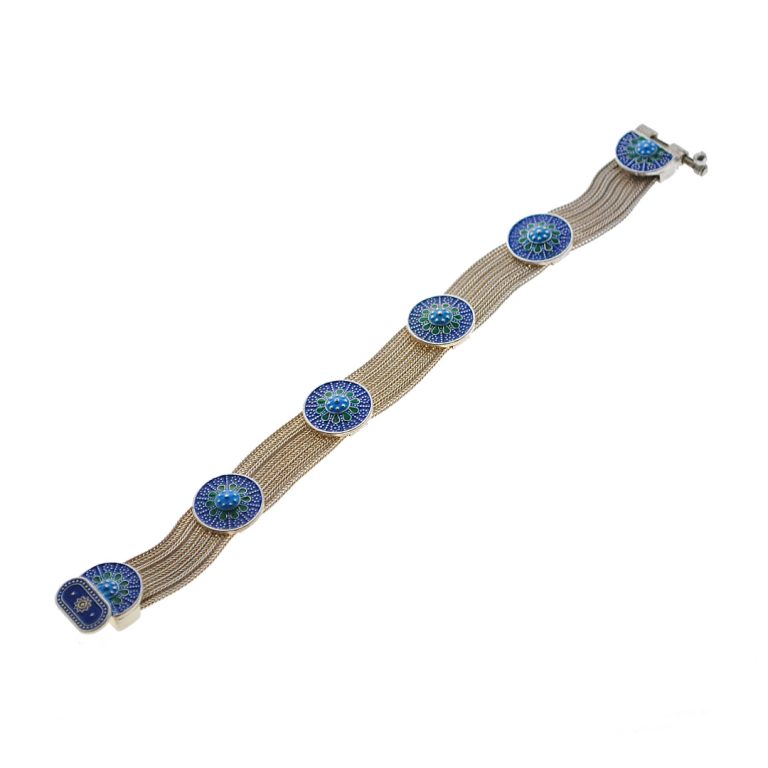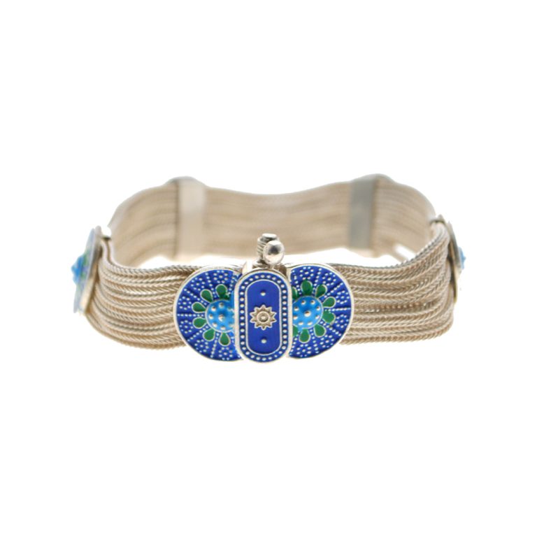 7 Sıra Zincir Üzerine, 925 Ayar Gümüş , Mavi Mineli, Mardin İşi, Gümüş Bilezik.