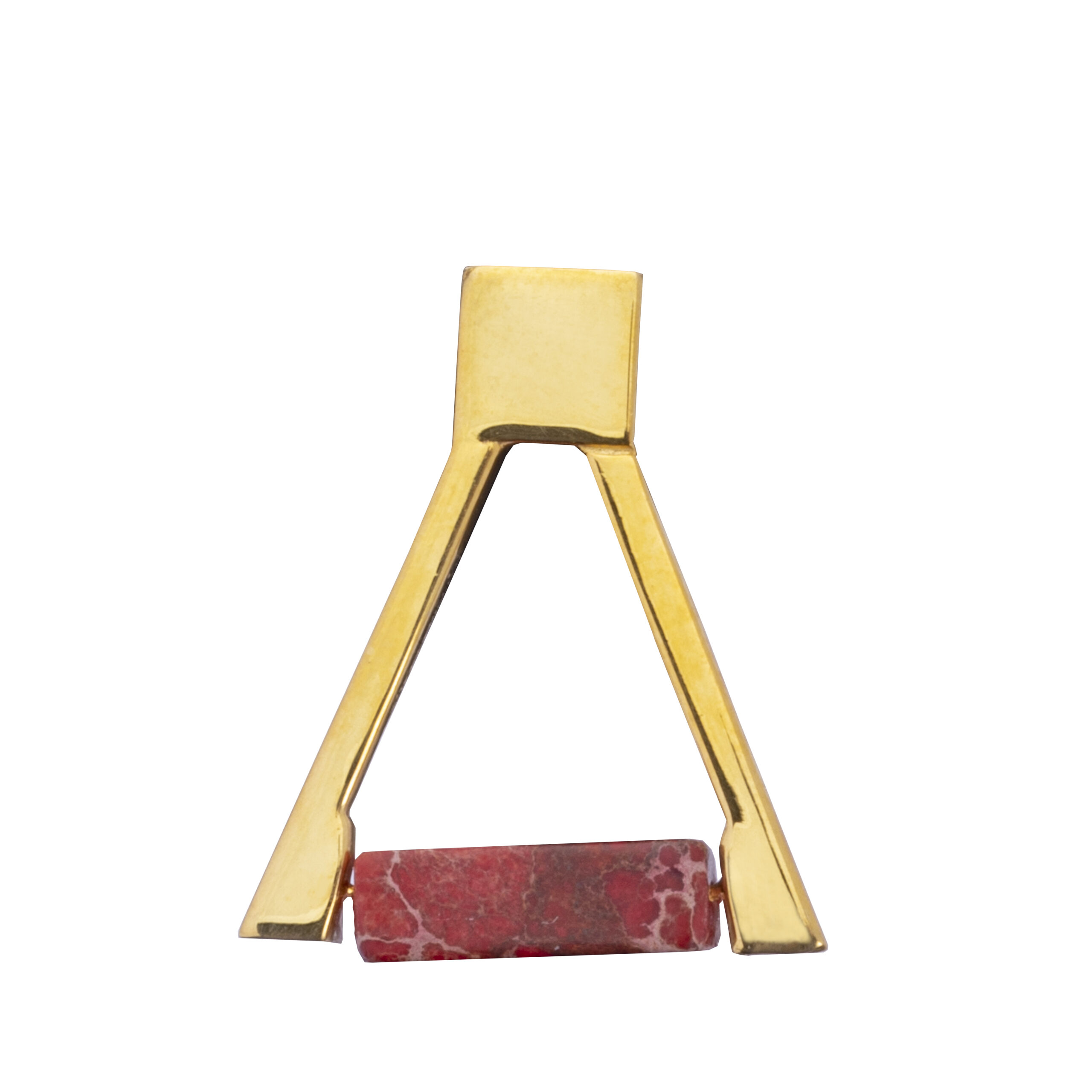 925 Ayar Gümüş, 14 Ayar Altın Kaplama, Quartz Taşlı, Üçgen Küpe.